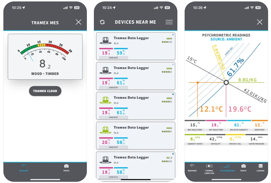 オプションのハンドヘルドプローブまたはハンマープローブを接続すると、CMEX5はピンモードに変更され、電気抵抗方式のピンメーターとして木材や木製製品の含水率を測定できます。特に、木材含水率5~30%の範囲で使用可能であり、建築資材の品質管理や家具・フローリングの水分チェックに最適です。